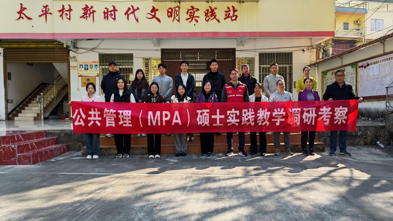 太平村第一书记叶家享详细介绍了村庄乡村振兴工作的丰硕成效。作为2025年5月刚荣获第七届全国文明村镇称号的壮瑶民族聚居村落,太平村以“五个统一”工作法为抓手深耕移风易俗,创新推行“上门”婚俗改革,将传统彩礼转化为支持家庭发展的专项基金,既涵养了淳朴文明的乡风民风,又为村民生活改善注入持久动力,这一兼具创新性与实效性的实践案例让在场师生深受启发。MPA中心教师引导公共管理研究生,将太平村的鲜活实践与公共政策分析、基层治理、乡村公共服务等核心课程知识点深度衔接,重点记录民族地区乡村振兴的特色路径与治理痛点,为MPA案例教学、课题研究积累了极具现实意义的第一手鲜活素材。